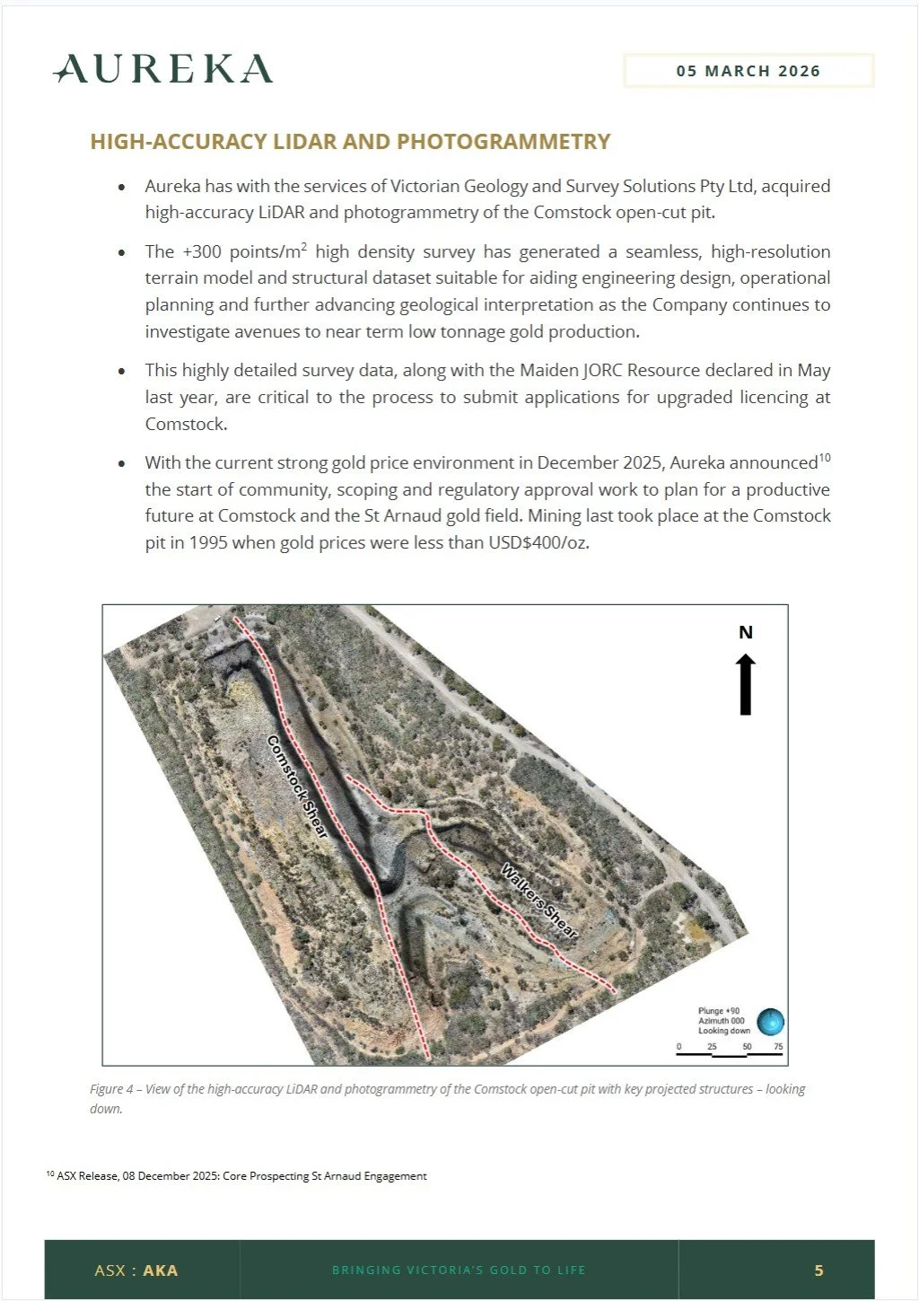 Victorian Geology & Survey Solutions engaged by Aureka to acquire hi red LiDAR data.